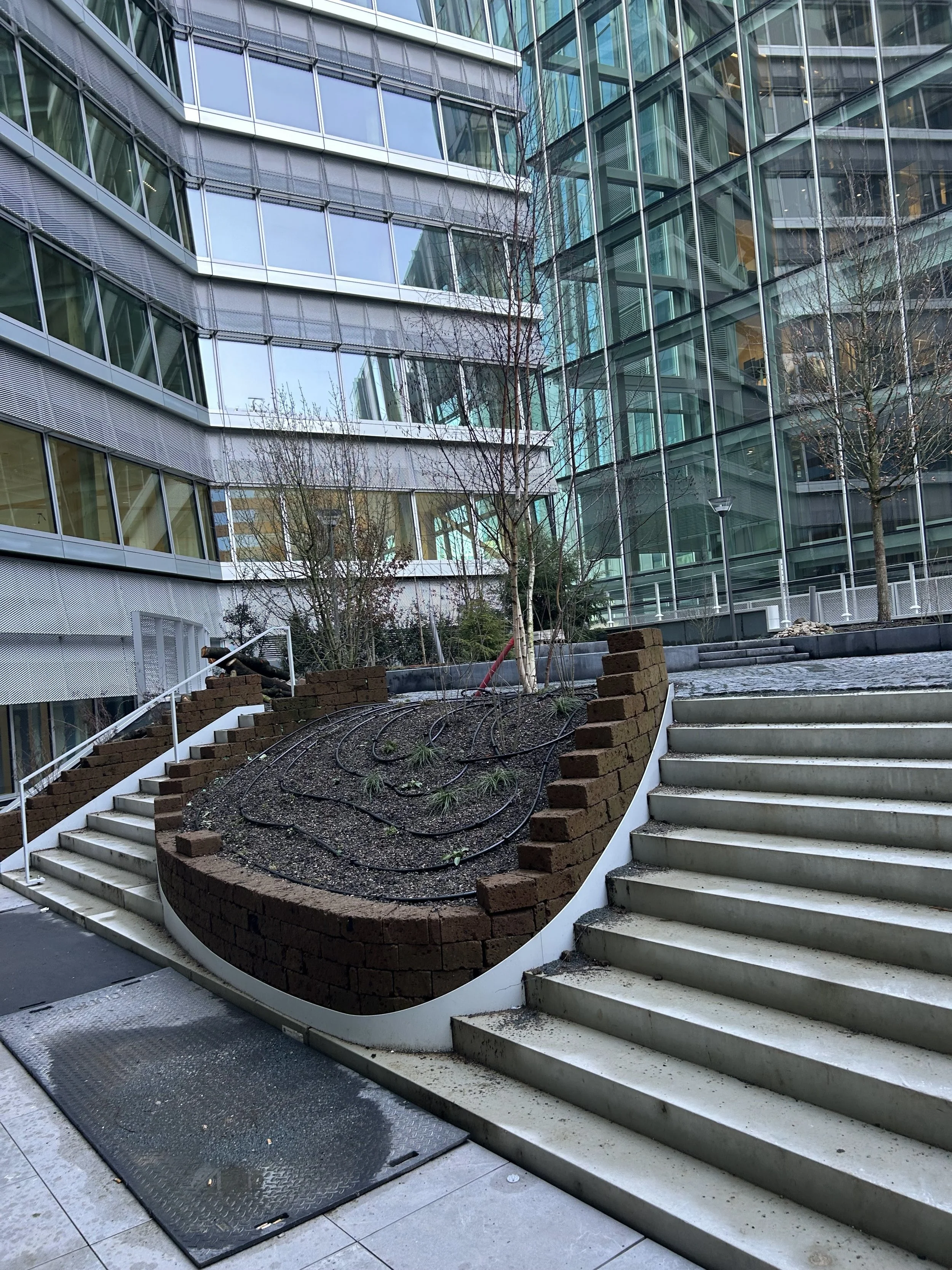 Dan is er hemelwater dat opgevangen wordt in een daktuin (met bijenhotel) en de toiletten spoelt. Speciaal aan the CubeHouse zijn de breath spaces die als buitenruimte rond het gebouw fungeren, groene longen waar werknemers kunnen werken en ontspannen. De breath spaces hangen als een sluier of schil om het gebouw heen. Theoretisch klopt deze toelichting maar de praktijk leert dat het wat onaantrekkelijke schachten zijn: is de daktuin van bovenaf zichtbaar? Dat is moeilijk te zeggen.