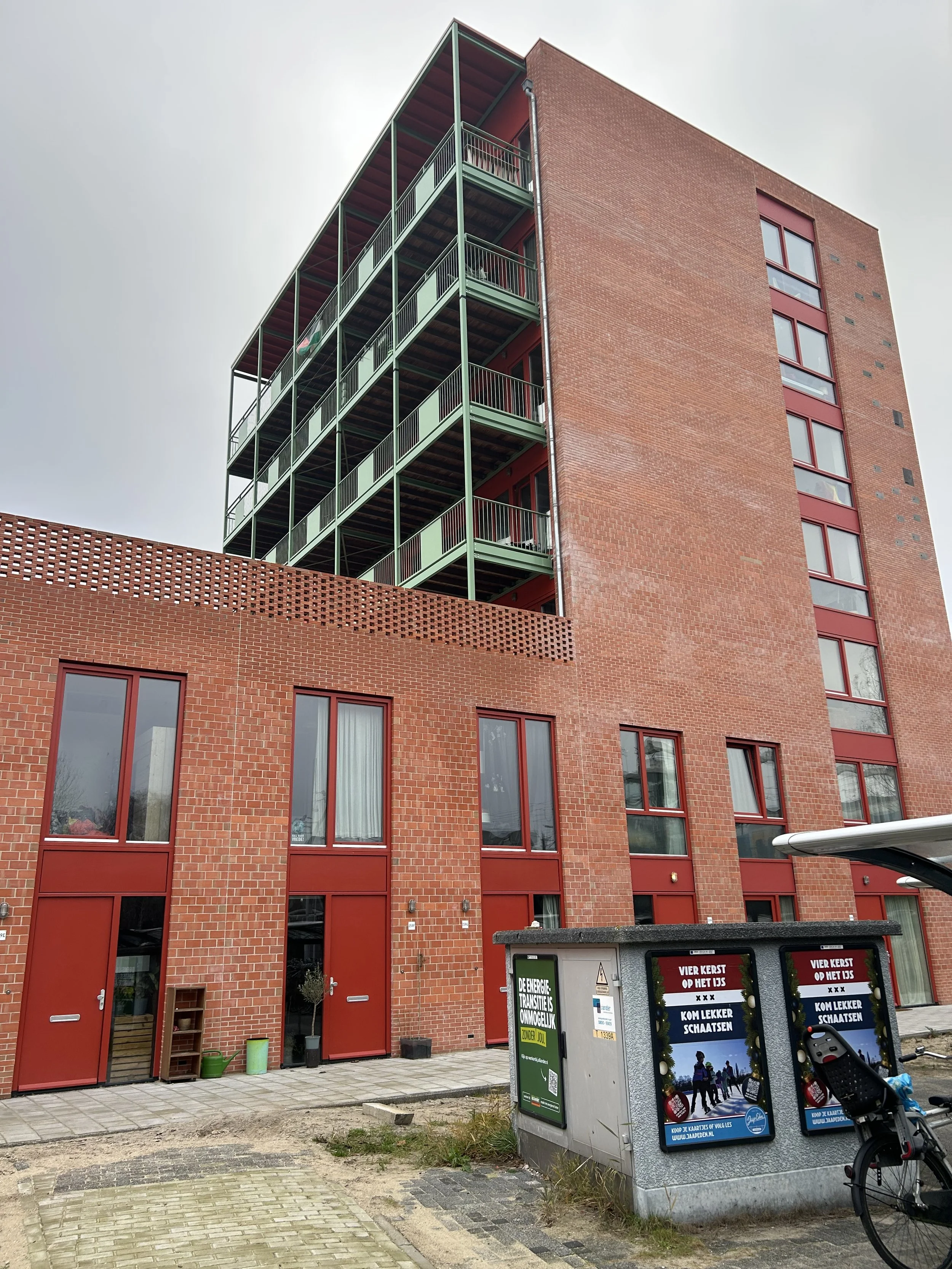 Intro: Naast station Science Park in de Watergraafsmeer is onlangs de Nieuwe Meent gerealiseerd, het tweede project volgens het coöperatie-model. Bewoners worden geen eigenaar, kunnen het ook niet met winst verkopen maar kunnen er wel gerieflijk wonen. Dankzij gemeenschappelijke faciliteiten.