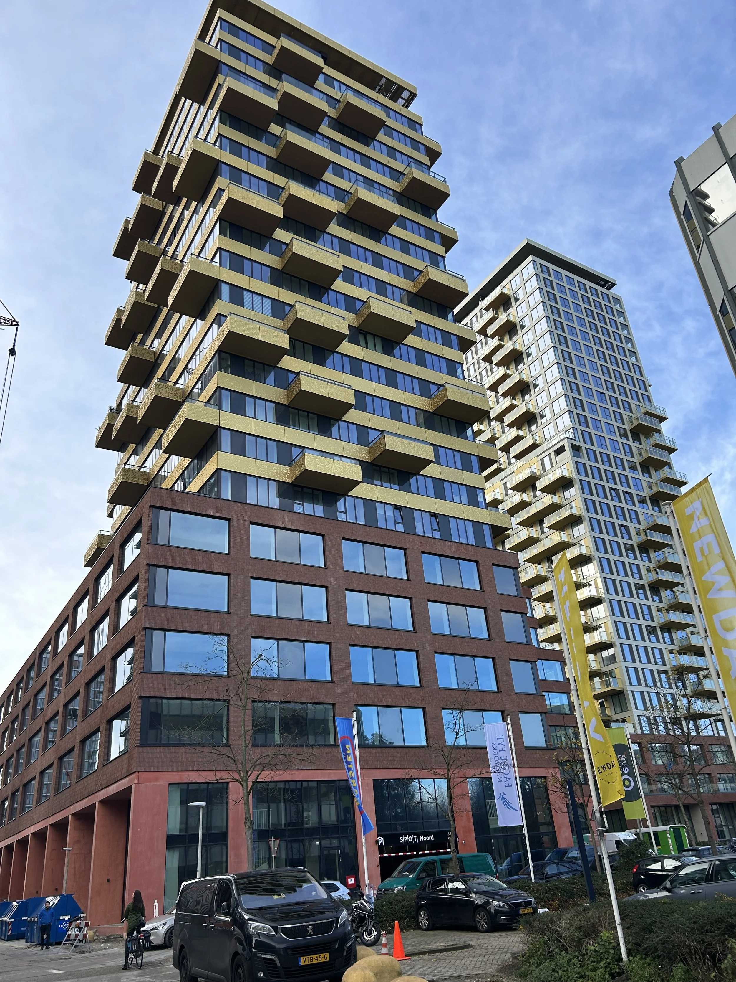 De eerste torens, van Klunder Architecten, zijn onlangs opgeleverd, en de bewoners kunnen genieten – voor zover dat al mogelijk is – van plantenborders in de straatjes. Dat groen wordt pas in het voorjaar verwacht. Het stedenbouwkundig plan is van Kaan Architecten die gedacht moet hebben dat er een stevig stedelijk antwoord nodig was op het rommeltje dat Amstel III ooit was. Het voorlopig resultaat – want SpotAmsterdam is nog halverwege – is een on-Amsterdamse wijk, met veel rode baksteen, dat wel. Het lijkt in niets meer op de anonieme architectuur van de jaren tachtig.